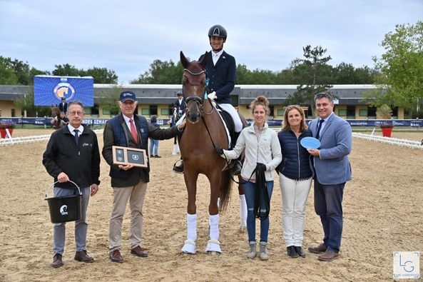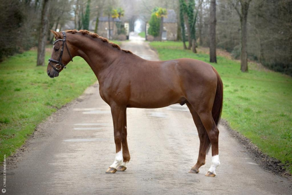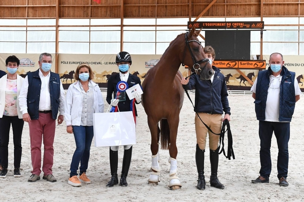 Daughter of DON JUAN DE HUS associated with the famous POETIN clone, she is the full sister of the 2018 French Young Horses Champion DORIAN GREY DE HUS, himself: