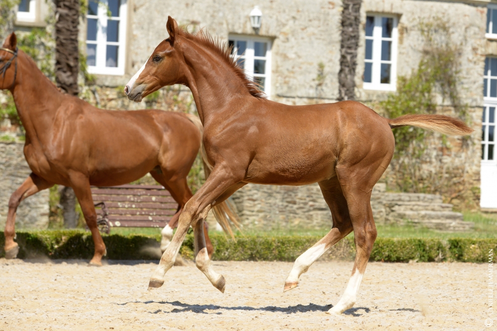 His sire SHOUPPYDAM DES HORTS, champion of the CIR and French Champion at 4 years old, is a son of QUIDAM DE REVEL, who marked High Level sport thanks to his offspring! JUMPY is a mare with extraordinary genetic potential who was notably 3rd in the Critérium des 6 ans before winning the final of the 7 ans at Fontainebleau and totaling 7 years of performances at more than 140 ISOs, including two at more than 160, and more than 90,000 euros in earnings.