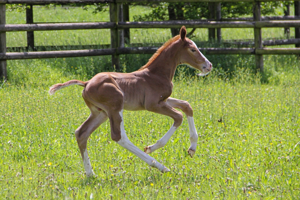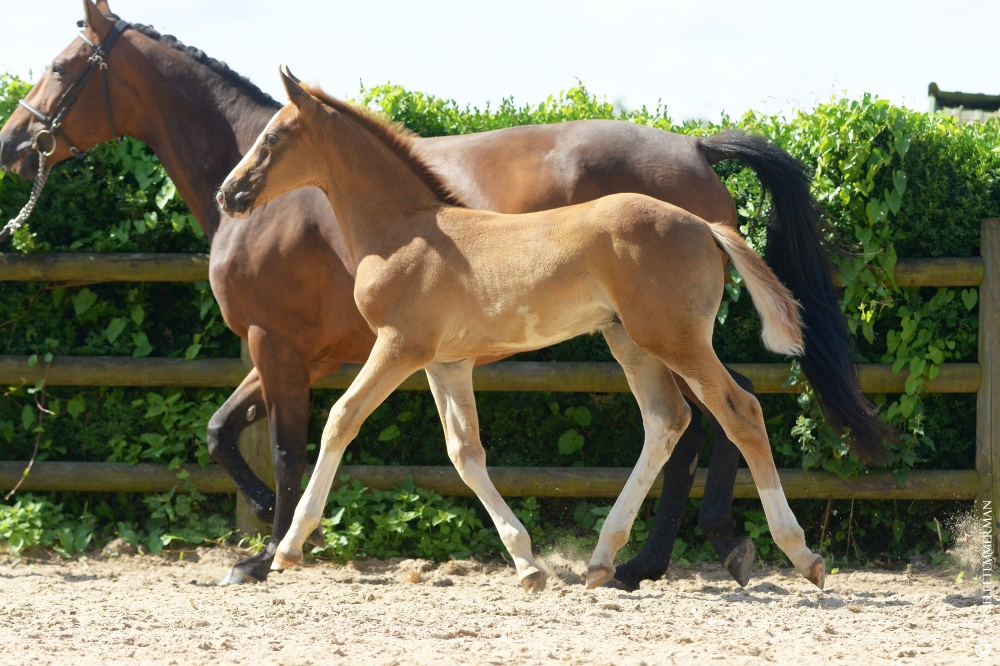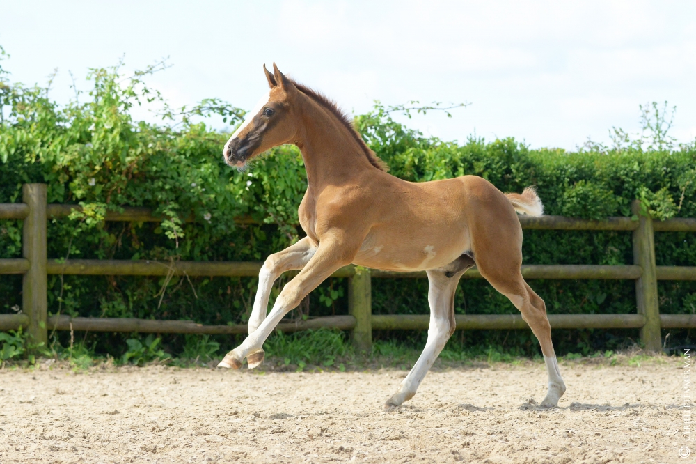 By the excellent JARNAC, Selle Français Originel, French Champion of the stallions at 3 years old then finalist in Fontainebleau of 4 and 6 years old, he also won the Masters of the stallions at 6 years old and is winner of the GP4 * of Chantilly, ranked during the CSI5 * in La Corogne, CSIO5 * in Aix La Chapelle ...