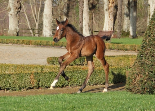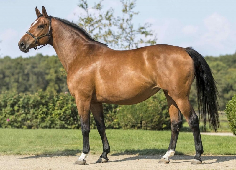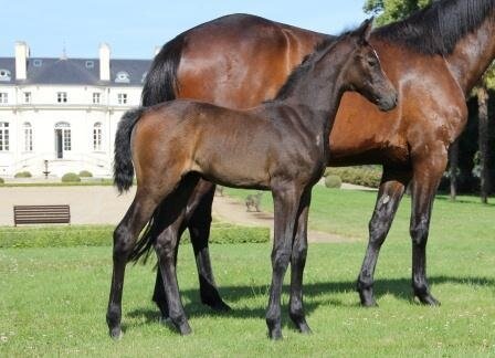 QUINDY DE KREISKER, results from the crossing of two World champions, DIAMANT DE SEMILLY and QUITO DE BAUSSY, with an amazing mare line rated 10/10 that has produced a string of international winners and stallions in all generations. She is indeed out of the famous JUMPY DE KREISKER (showjumping breeding value 164), a mare of exceptional genetic value who, among others, came 3rd in the 6-year-olds French critérium before winning the 7-year-olds finals in Fontainebleau; she retained a showjumping breeding value over 140 for 7 years, including 2 years over 160, and her life earnings amount to over 90 000 euros.