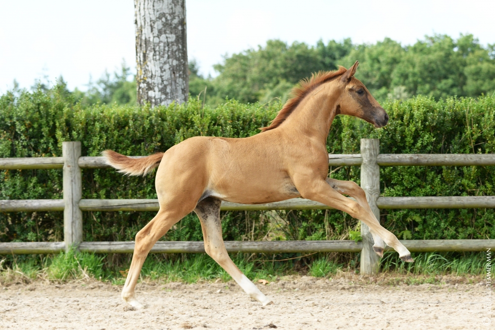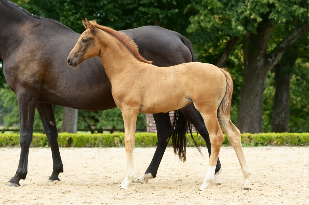 Daria est une fille de DON NOBLESS et de RIVA DEL SOL (RUBIN ROYAL). Née en 2014, la belle alezane démontre de sublimes allures et un charisme tout droit venu de ses ancêtres, ce qui lui offrira en 2017 le prestigieux titre de Championne des juments Hanovriennes.