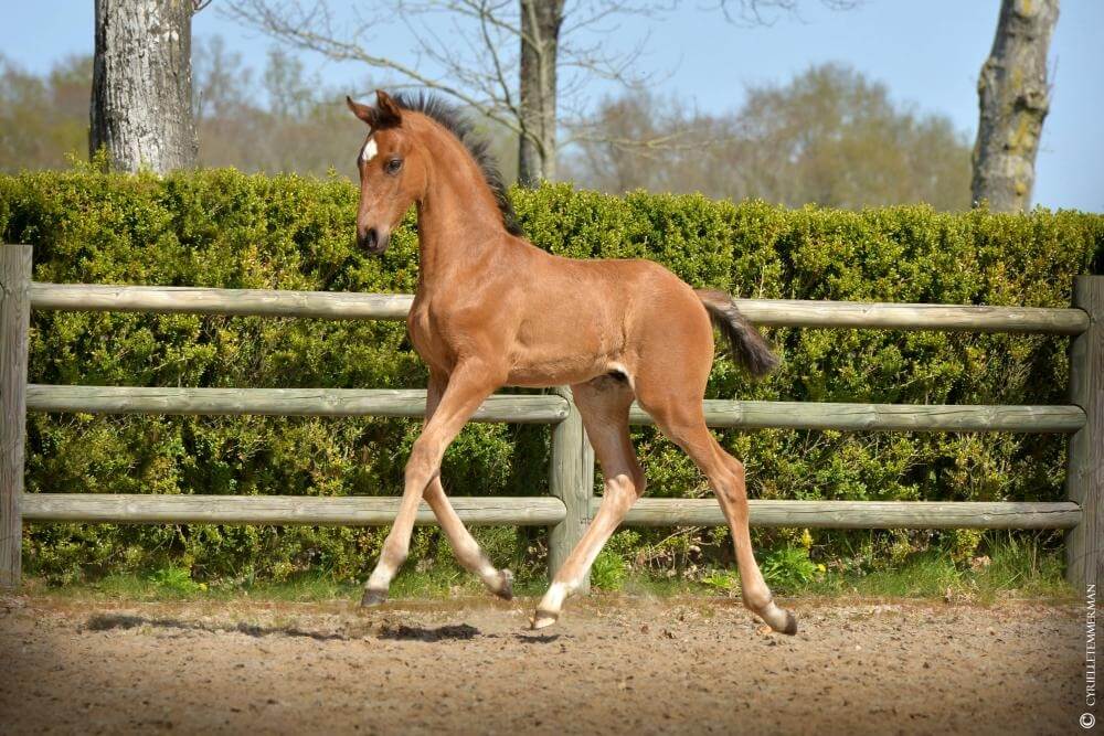 En 2013, FRANKLIN a été récompensé champion des étalons du KWPN et a ensuite remporté le test de performance hollandais. A 5 ans, il était finaliste aux Championnats du Monde pour jeunes chevaux et y a aussi participé à 6 ans. Il est par l’étalon de renommée internationale AMPERE, qui convainc par sa production dans toute l’Europe chaque année. En 2008, AMPERE était le champion des étalons du KWPN et a ensuite remporté son test de performance. Son père, ROUSSEAU, a remporté l’argent aux Championnats du Monde pour jeunes chevaux de Verden en 2003 et a été capable de produire un champion des étalons du KWPN trois fois de suite.
