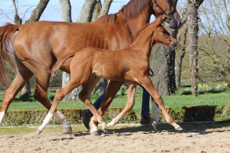 Jument née en 2017, mise à la reproduction au vu de la qualité de sa génétique. Fille de notre étalon VIVALDI DU SEIGNEUR, qui a tourné jusqu'en Grand Prix 1m50 sous la selle de Marine Blondet puis Pénélope Leprevost. Sa production est encore jeudi, mais compte déjà plusieurs fils et filles sortant au plus haut niveau en CSIO : VALENTINO DE HUS, POMEROL, H5 JEMOUSIN VAN DEN DAEL... ainsi que plusieurs produits sortant brillamment en concours complet.