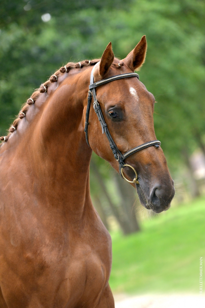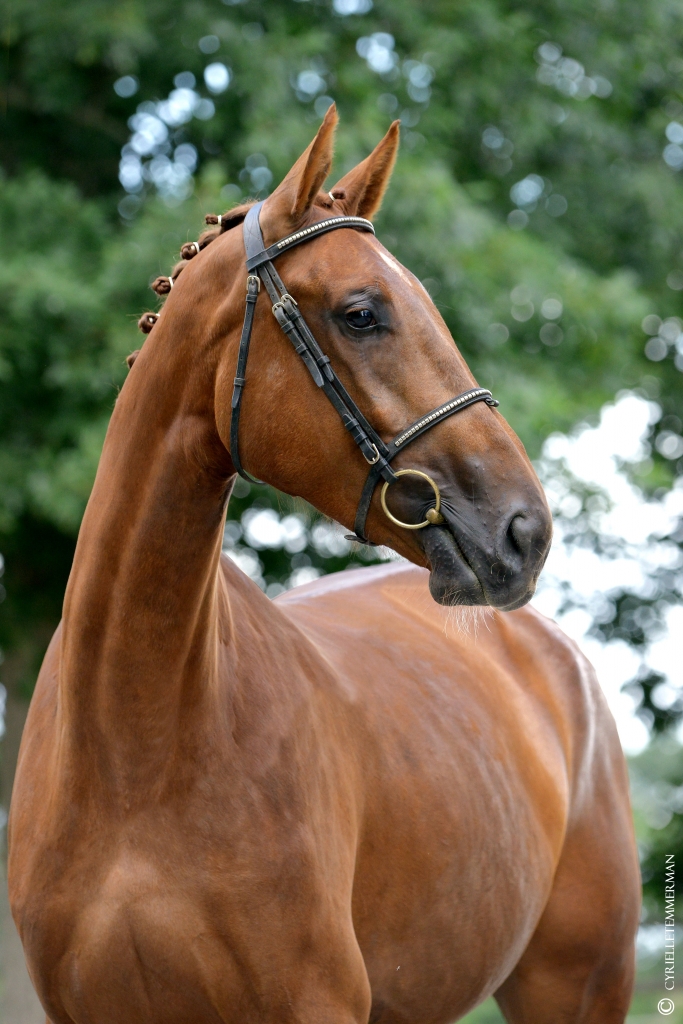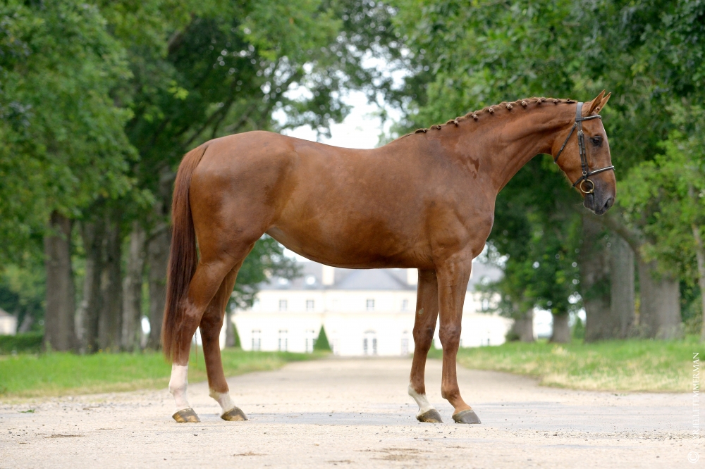 Accidenté à 3 ans, il ne pourra pas poursuivre de carrière sportive. Mais sa production se révèle exceptionnelle avec notamment PERSEUS DE MUZE, approuvé au BWP, sans faute depuis le début dans le circuit hivernal des 4 ans de la Pavo Cup.