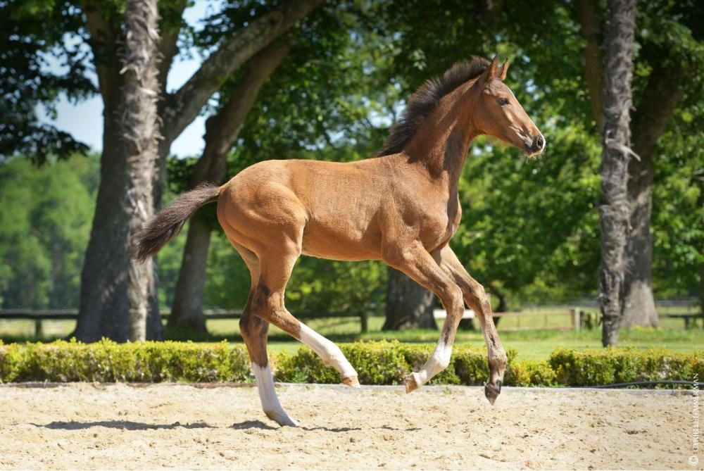 Par notre regretté DON JUAN DE HUS, fils de JAZZ, qui, en 2013, etait le troisième meilleur père mondial approuvé sur descendance grâce aux très nombreuses performances de ses produits : PARZIVAL, GLOCK'S TANGO, UNLIMITED, BLOM'S WYNTON, ORION, TOOTS, MACRIDER PREMIER...