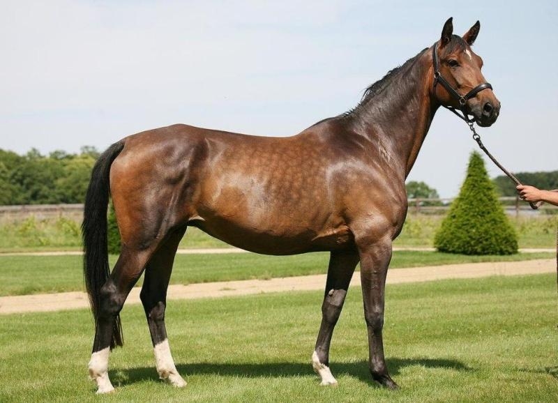Fille du célébrissime ARGENTINUS. Considérée comme une des meilleures juments du Oldenbourg, vendue 120 000€ à 3 ans. Souche mixte Obstacle et Dressage.